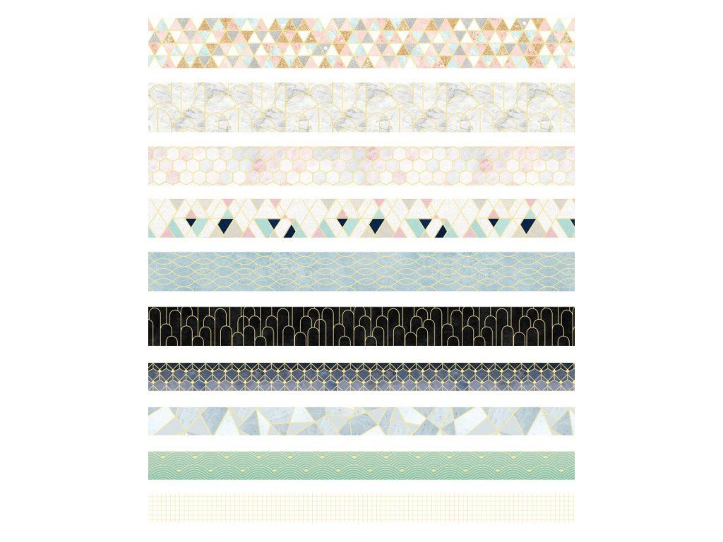- pásky laděné převážně do světle pastelových barev se zlatými geometrickými útvary