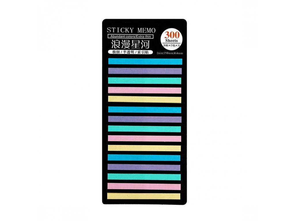 - Druh: transparentní poznámkové štítky, samolepicí záložky, zvýrazňování textu